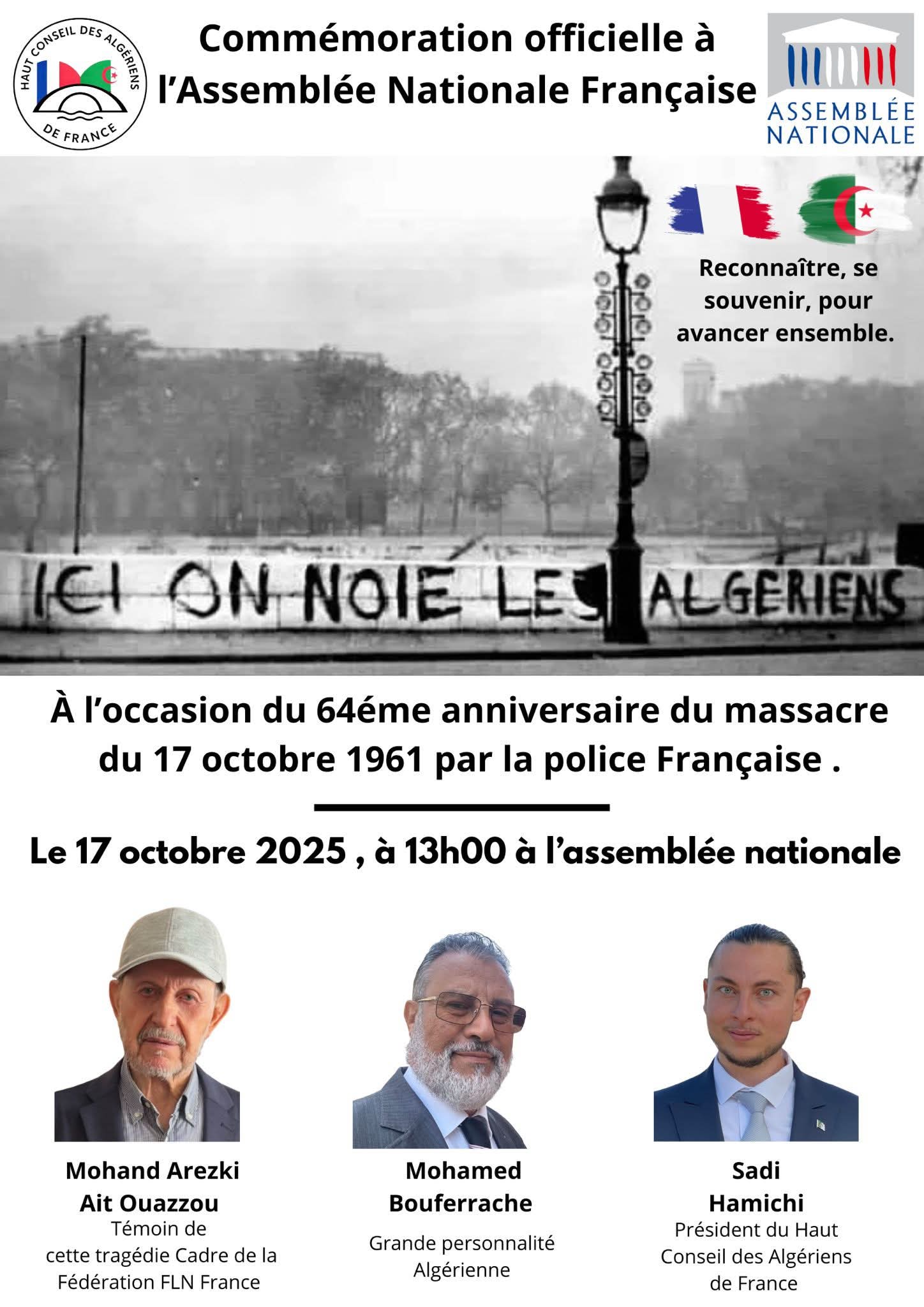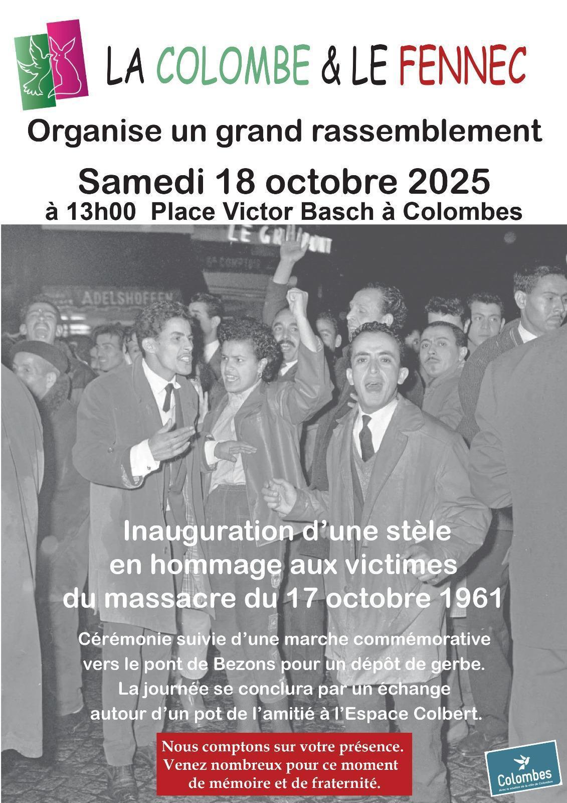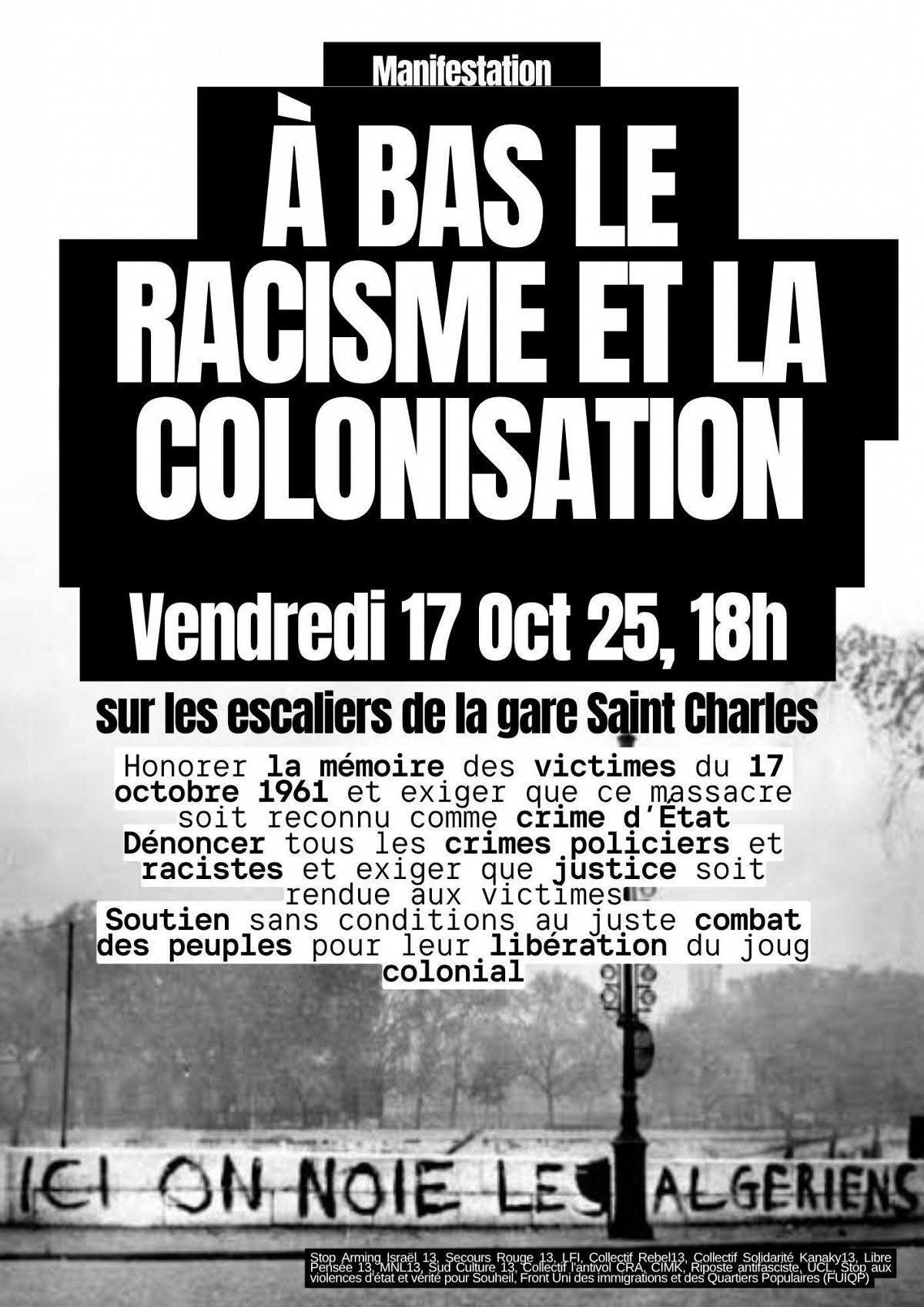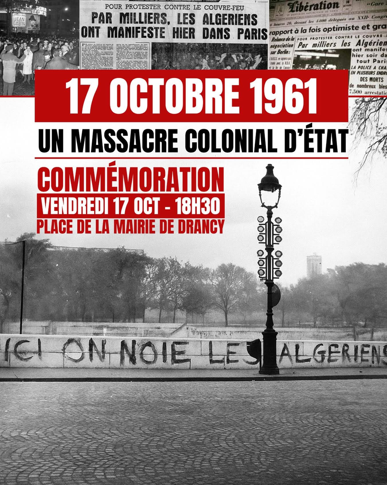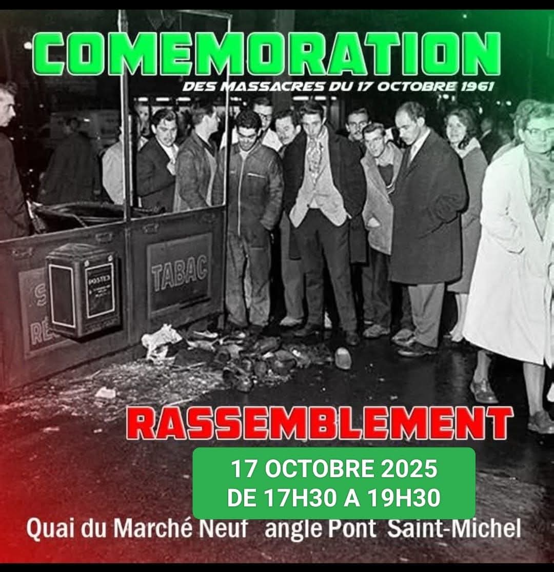 - Obtenir que la journée du 17 octobre 1961 (massacre des algériens à Paris) soit déclarée : Journée nationale anticoloniale ( l’abolition du système colonial)