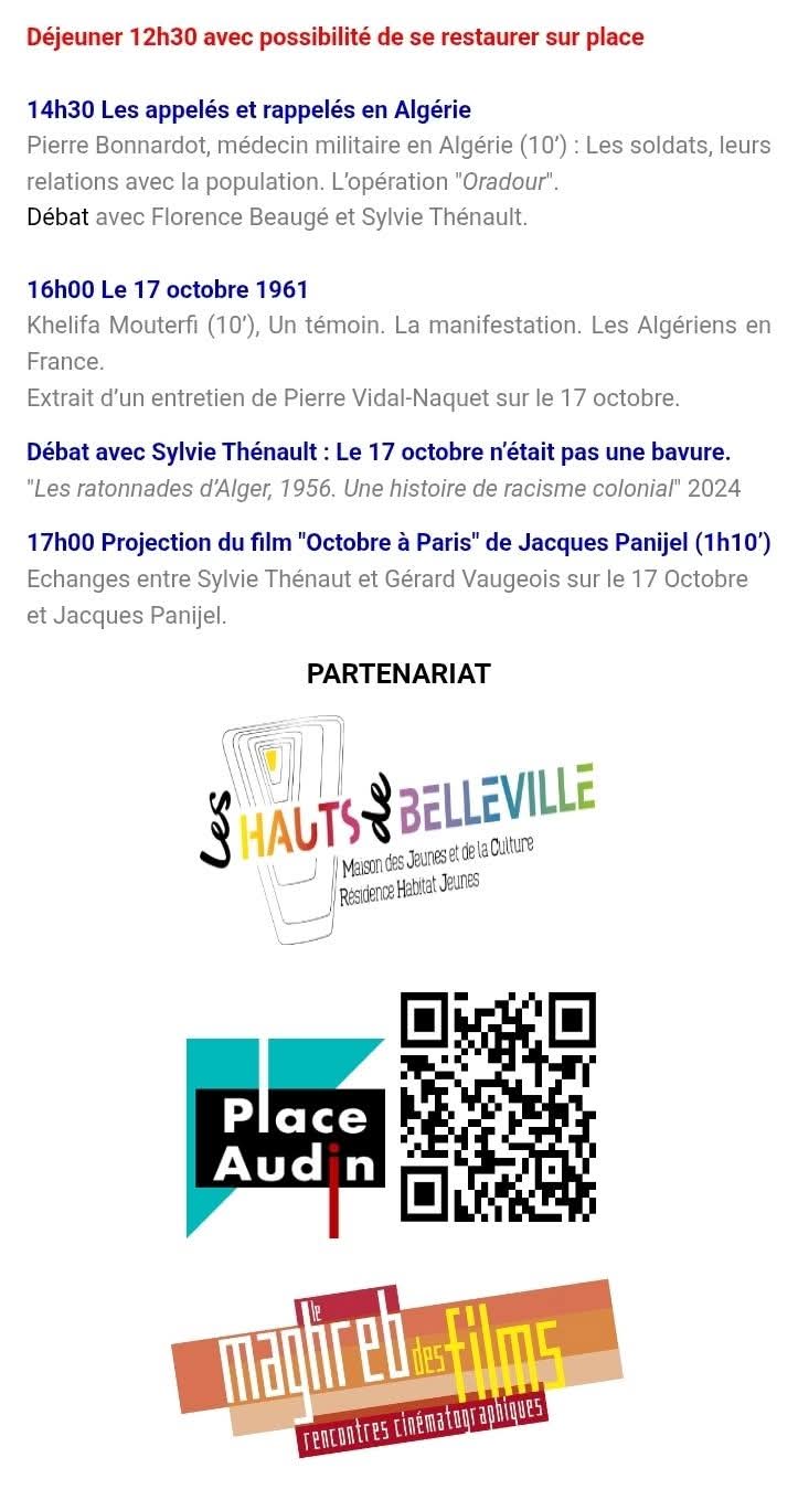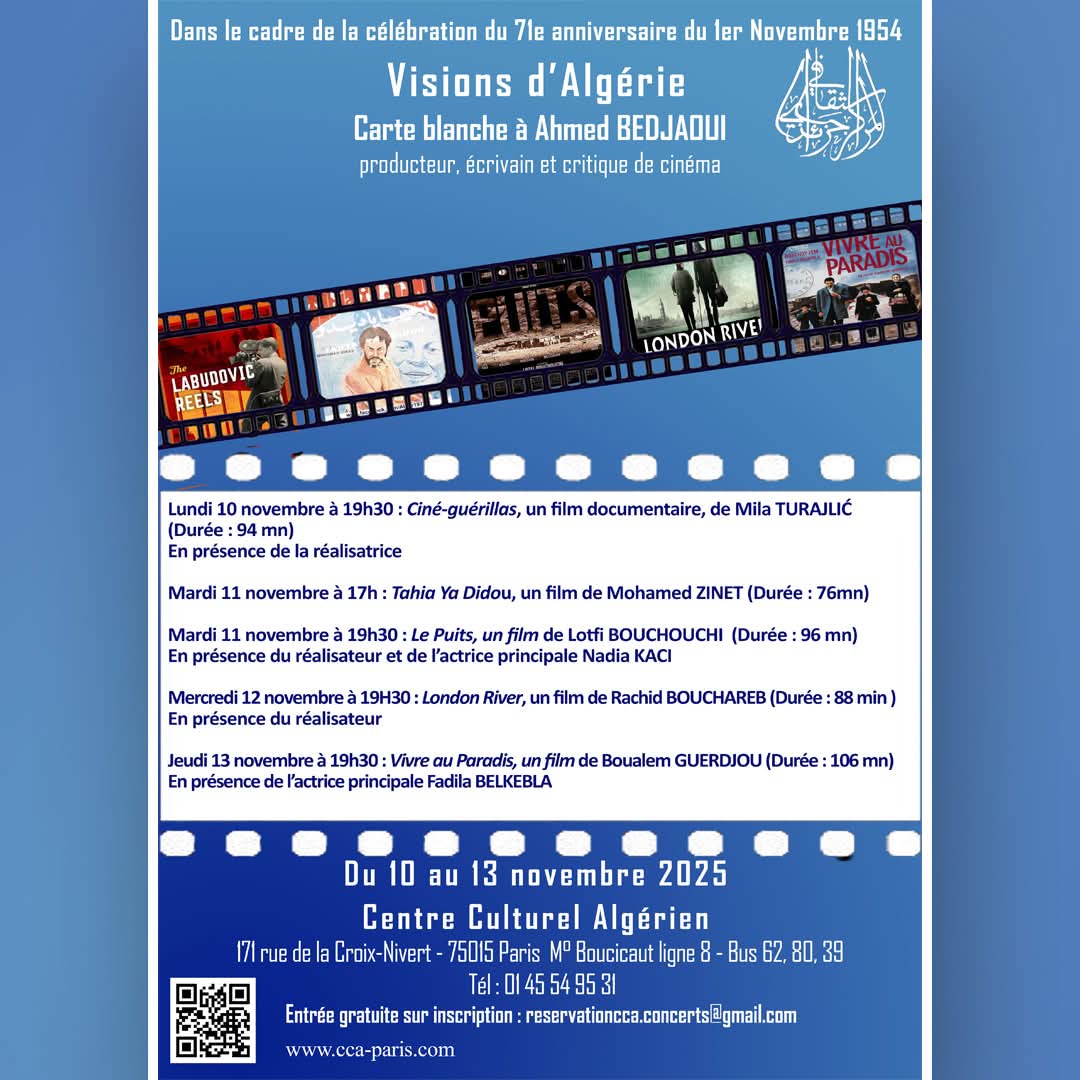 L'association APCV dans le cadre de ses activités propose les rencontres Panorama-CinéMémoire contre l’OUBLI à l’occasion du 60ème anniversaire de l’indépendance de l’Algérie,…d'octobre – décembre 2022)