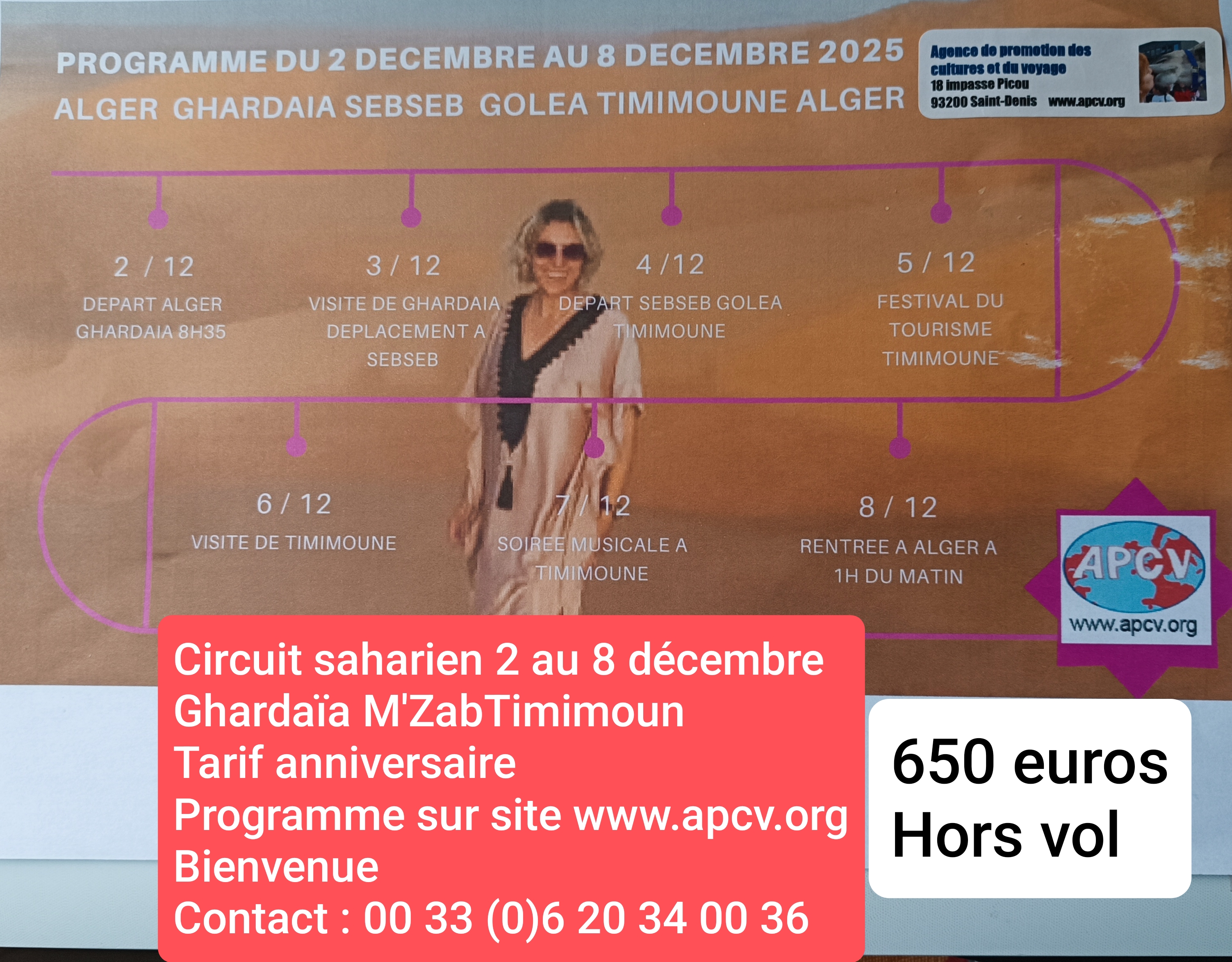 Possibilité de combiner avec le circuit algérois du 9 au 12 décembre : 4 jours-3 nuits