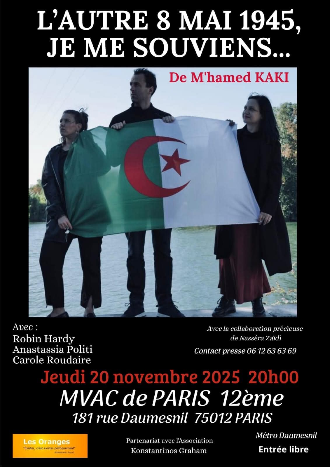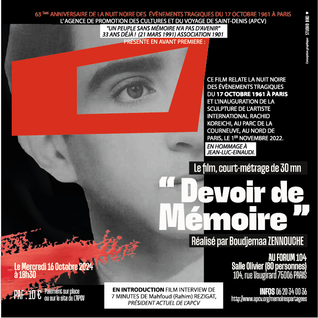 L'association APCV dans le cadre de ses activités propose les rencontres Panorama-CinéMémoire contre l’OUBLI à l’occasion du 60ème anniversaire de l’indépendance de l’Algérie,…d'octobre – décembre 2022)